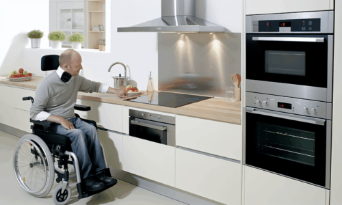 L’autre astuce bonne à prendre pour optimiser une petite cuisine pour une personne en fauteuil, en matière d’éclairage, est de pouvoir moduler ce dernier grâce à des interrupteurs électriques situés à proximité de portes d’entrée de la pièce, mais aussi et surtout à 80 cm de hauteur au maximum afin qu’une personne en fauteuil puisse les atteindre aisément. De plus, ces interrupteurs doivent être larges et faciles d’accès. Une personne en fauteuil va ainsi pouvoir cuisiner en toute autonomie.